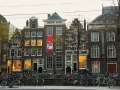 Doszliśmy do Złotego Łuku – miejsca gdzie znajdują się najpiękniejsze kamienice amsterdamskiej starówki. Są ogromne, wyraźnie szersze od inny podobnych w mieście, z jeszcze większymi oknami, przez które widać olbrzymie przestrzenie w środku i gigantyczne czasem żyrandole.