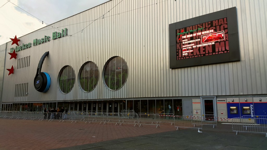 Pojechaliśmy do Heineken Music Hall  (tuż obok stadionu Ajaxu). Około 1 kilometra od sali koncertowej znajduje się osiedle zamieszkałe głównie przez czarnoskórych obywateli, z parkingiem w cenie 10 EUR / dzień, gdzie nocowaliśmy. Obsługa parkometru: wpisuje się nr rejestracyjny pojazdu, określa czas postoju, wsuwa kartę kredytową i enter. Biletu drukować nie trzeba.